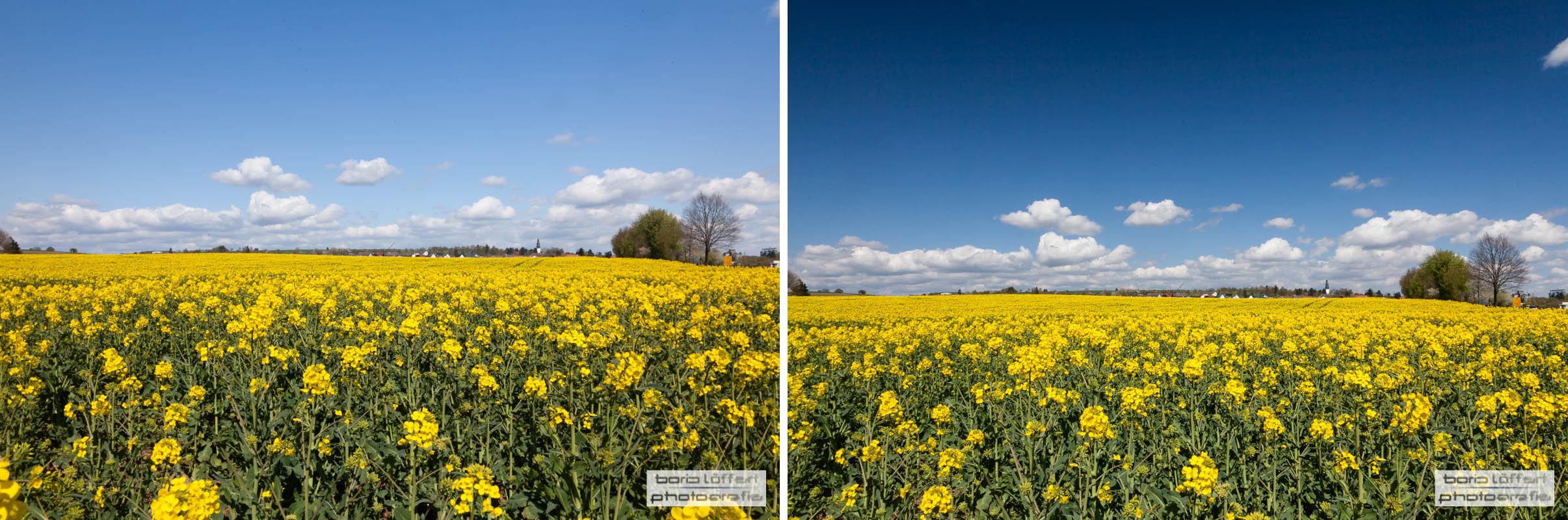 Ein Polfilter gehört also unbedingt in die Fototasche. Beispielbilder mit und ohne Polfilter gibt es hier links.